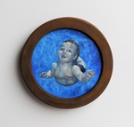 2013Een roestige ronde lijst, lijkend op een patrijspoortje, met zicht op een klein jongetje die vol vertrouwen rondzwemt. Verkocht.