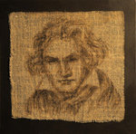 2010Een schilderij gemaakt naar een zelfportret van Rembrandt. Omdat het een historische afbeelding is heb ik ervoor gekozen het portret te schilderen op een oud materiaal als jute. Dit jute is geplakt op een bruin geschilderd 3D doek zodat het jute mooi glad blijft.