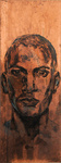 2009Klein portret op geoxideerd koper, voorzien van vernislaag en ophangmechanisme.